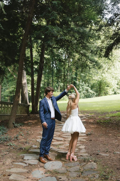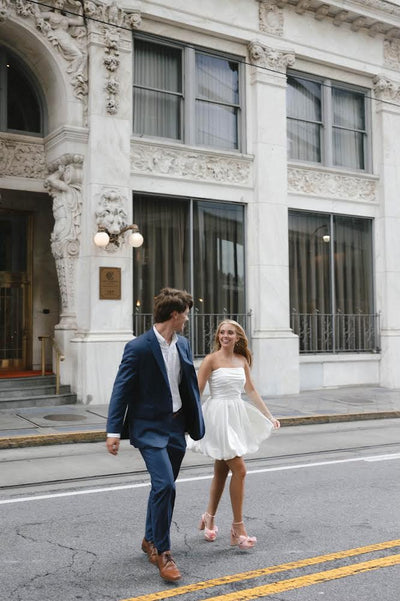 Perfect for a modern bride looking for a chic, short wedding dress that blends style, craftsmanship, and comfort.