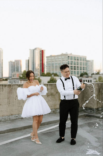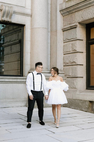 For the brides who are ready to break the mold and double down on their big day with a dress that's as versatile as it is vibrant, the Karen Short Dress is your match. Whether it's your second look for the wedding day or your first choice for a less formal affair, this gown guarantees you'll be the life of the party.