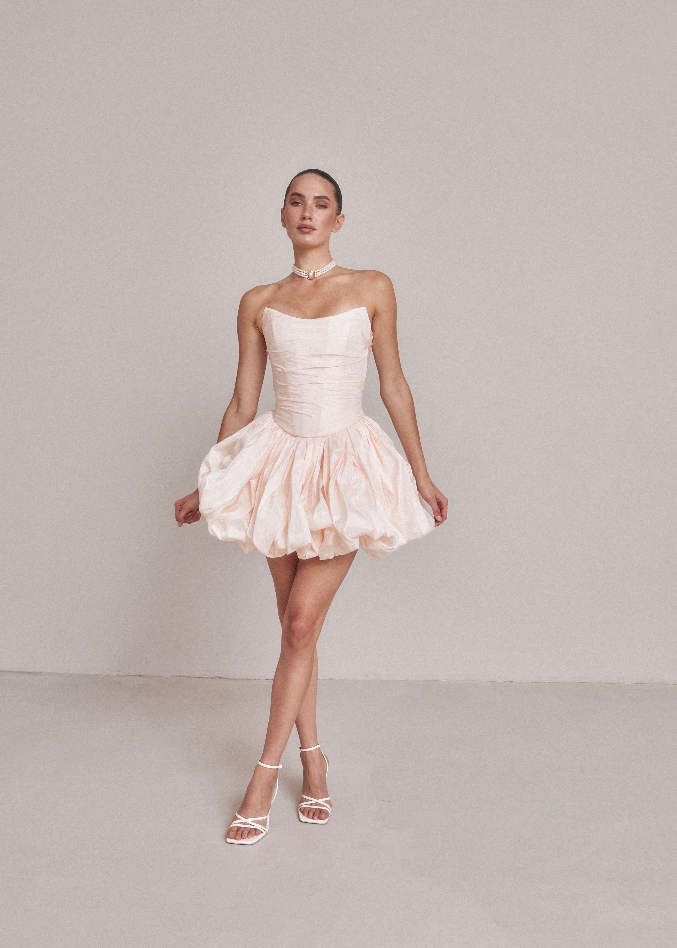 Two-Piece Bridal Dress, Blush Wedding Corset & Short Taffeta Skirt, Daphne Set