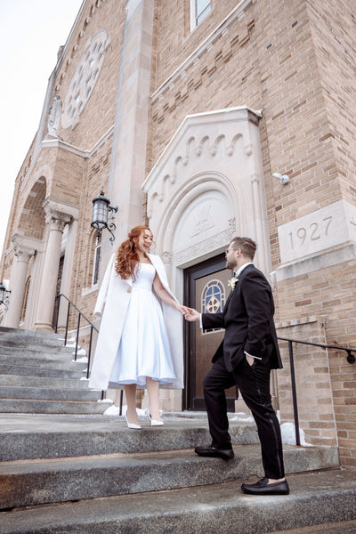 Midi Satin Wedding Dress, Simple Wedding Dress, Emily Dress
